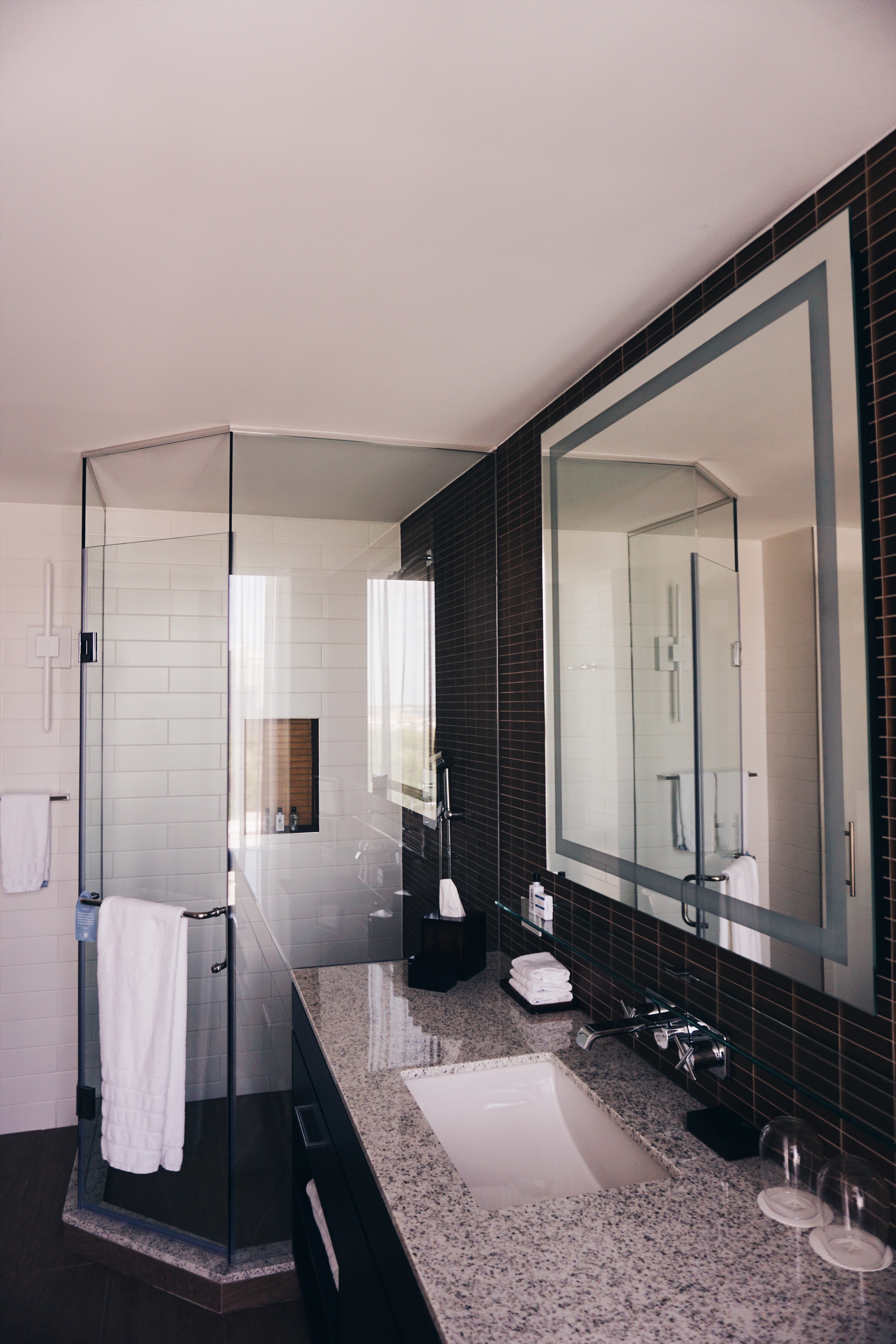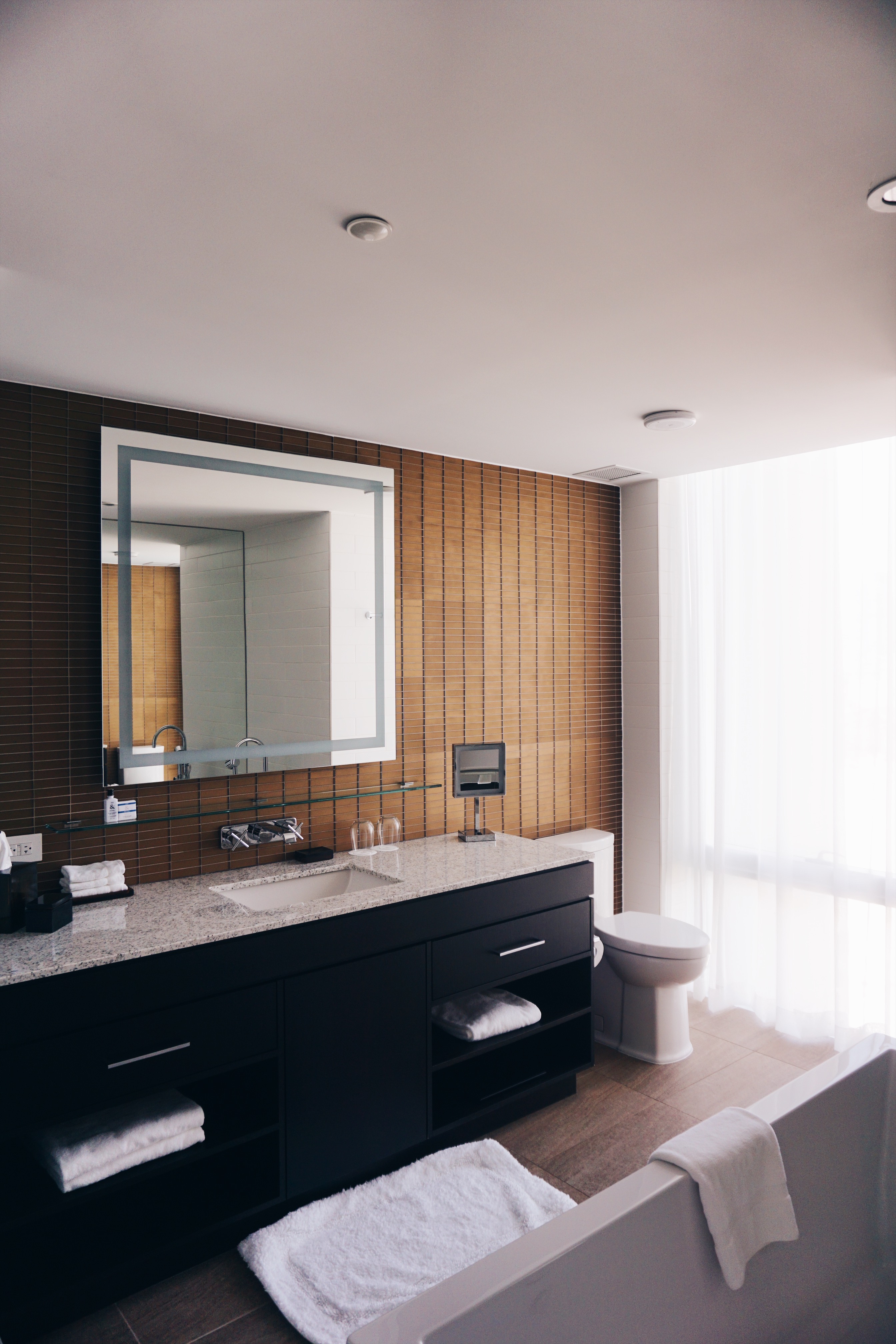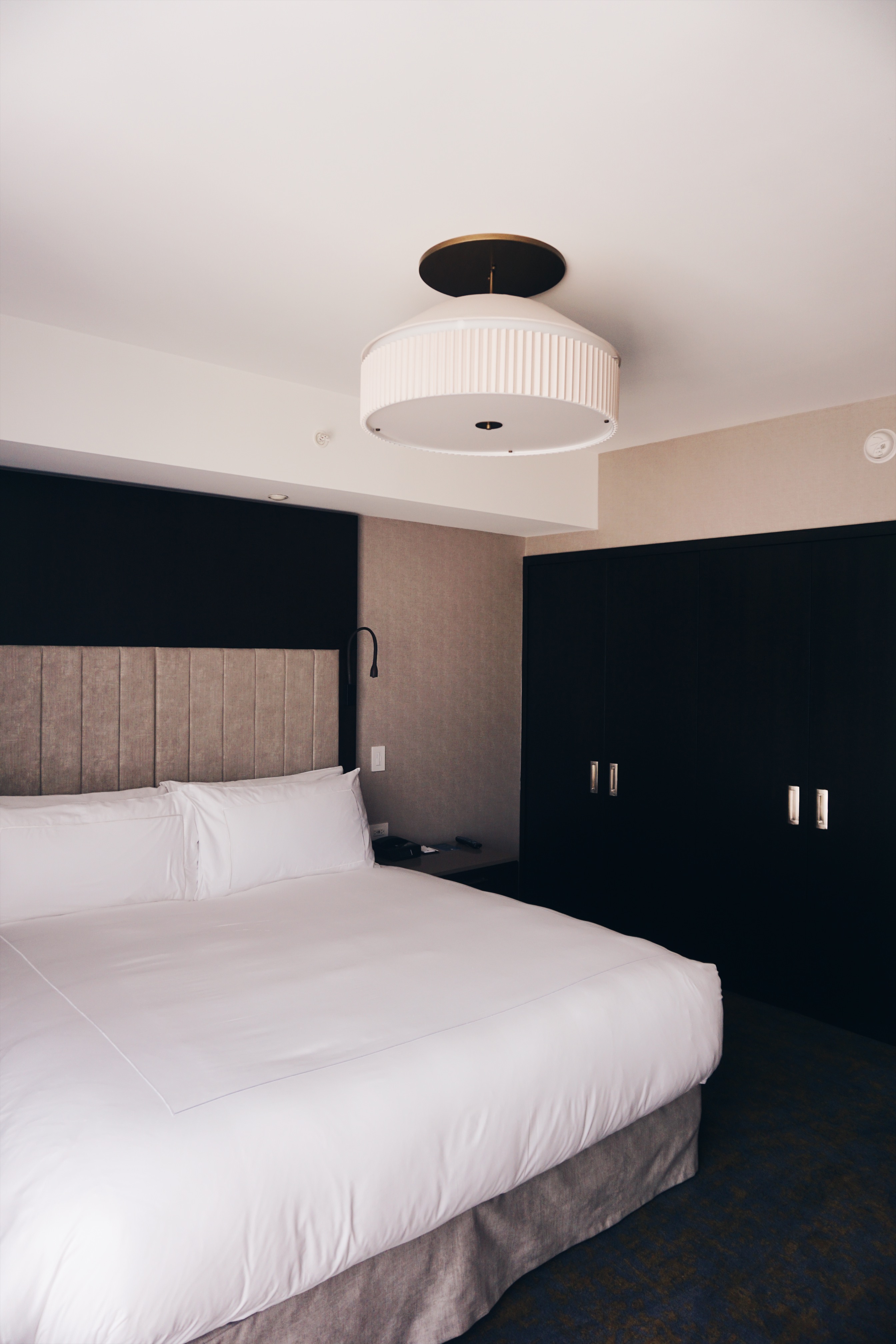 The lobby is spacious, modern and hosts an abundance of extremely welcoming staff. It felt more like coming home than checking into a place I’d never been before! After finishing up the check-in process, I headed up to my suite to unpack and get ready for a fabulous rooftop happy hour. My breath was completely taken away when I entered my room! It was beyond gorgeous. If only my apartment looked as gorgeous as this suite, I’d be forever happy.