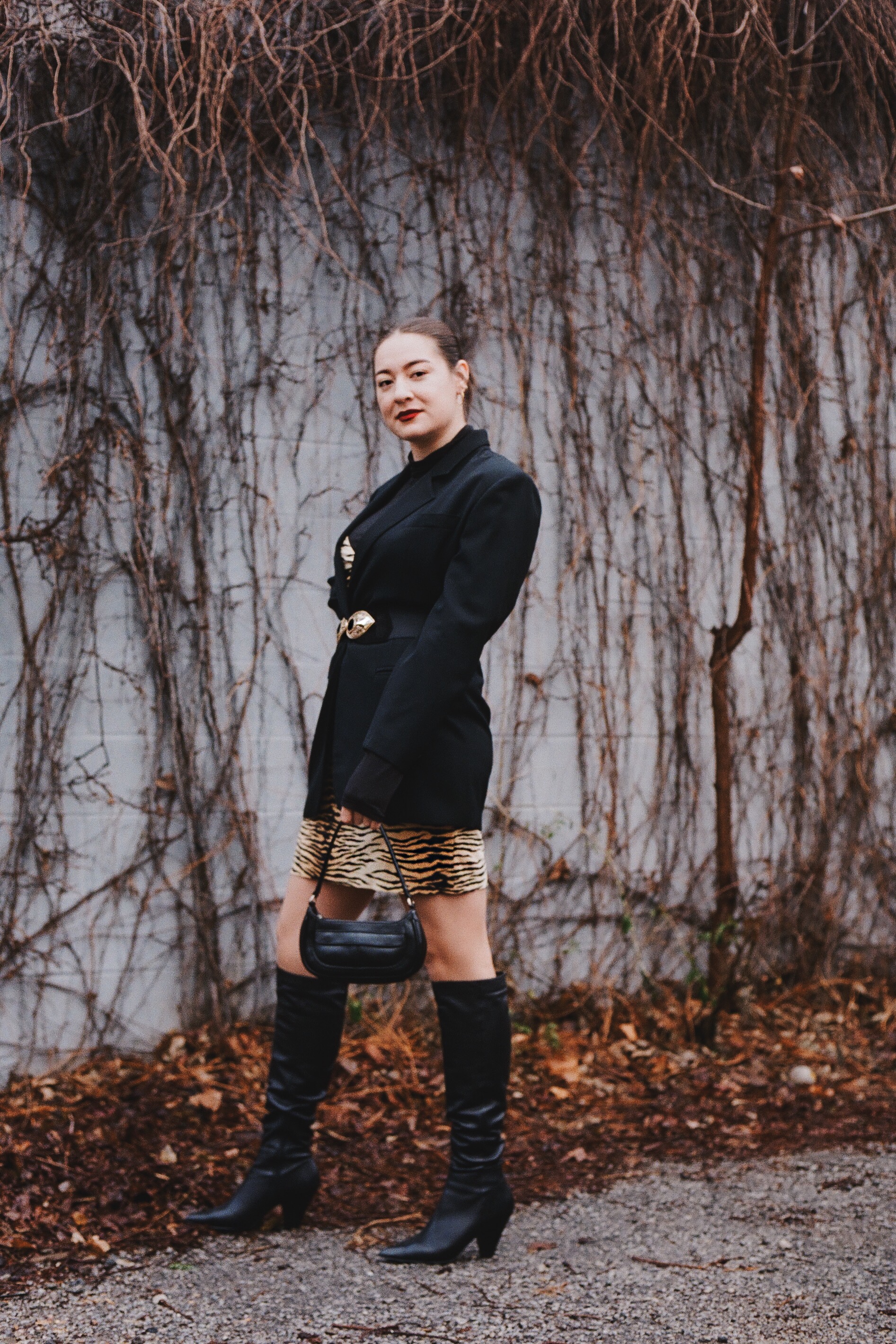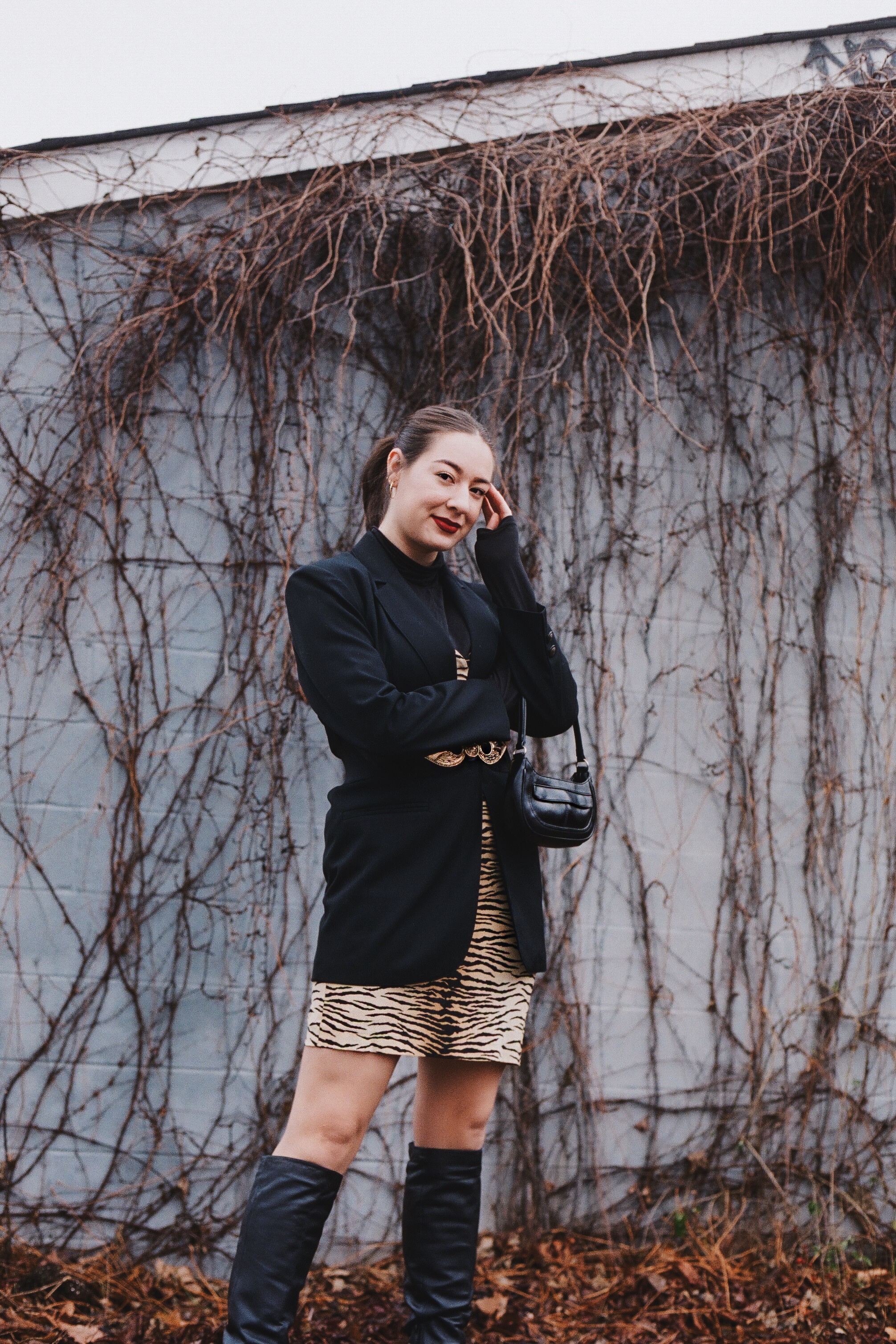 You can find plenty of brands offering outfits in a variety of prices, from a pair of velvet trousers to a satin dress. However, while the prices can vary from urban street quality to premium material, you’ll rapidly notice that most outfits look the same. Instead, try the following experiment: Look online for pieces that you love, save photos to your phone and go check out your local thrift & vintage stores to find similar pieces. You’ll definitely find something unique and it’ll cost a fraction of the price. Plus, vintage items can often be a lot better quality than the fast fashions of today. Also, you’ll hardly ever run into the fashionista nightmare of showing up to a party in the same look as someone else. Thrift shopping allows you to be completely individual. I scored my dress, blazer, belt and purse from Common Sort.