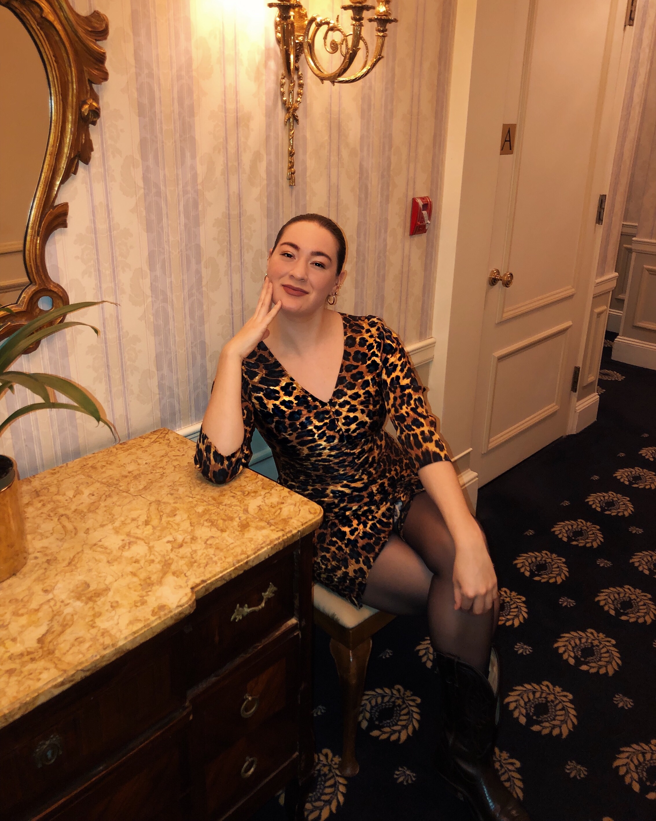 I don’t know if you can tell from these photos, but this dress seriously cinches you up! It was possibly the wrong choice to wear out for an Italian feast at Joanne Trattoria—Lady Gaga’s family’s restaurant. However, I managed to finish my entire plate of linguine with scallops in cream sauce and still look fabulous. I felt so ferociously fashionable with this New York leopard print look.