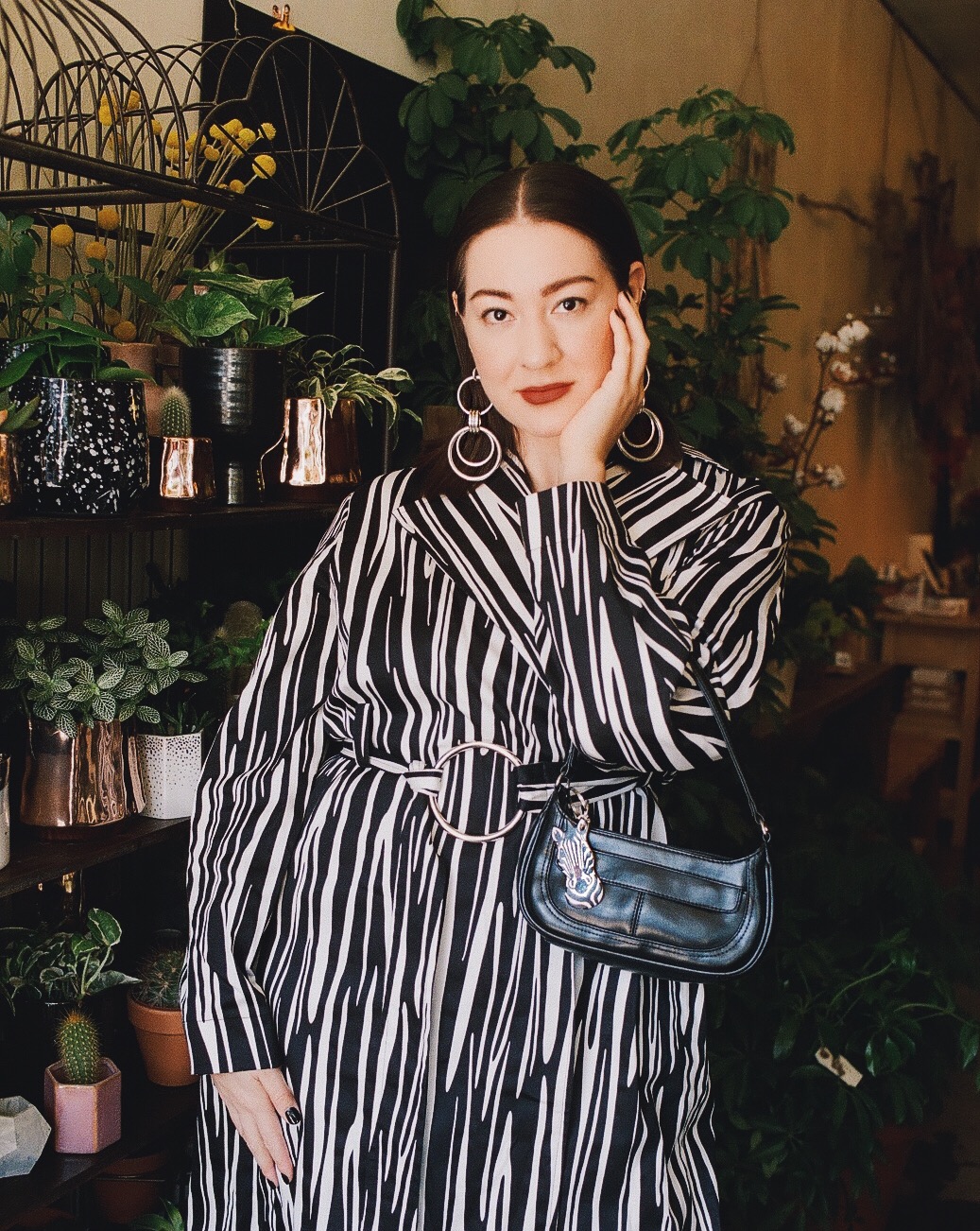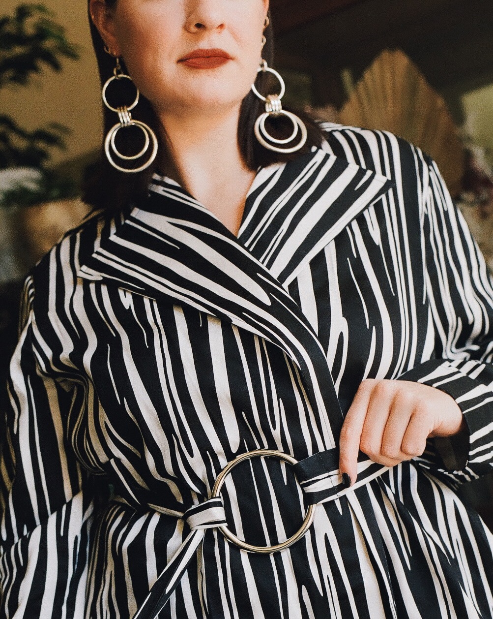Models in magazines show off outfits that are anything but dull. So, first things first, your look has got to have a pop to it. I chose an abstract zebra trench coat as my pop. Then, I took it a step further with statement earrings, a mini purse & a coordinating zebra keychain. Of course, you don’t have to go as eccentric. But IÂ love standing out when it comes to fashion.